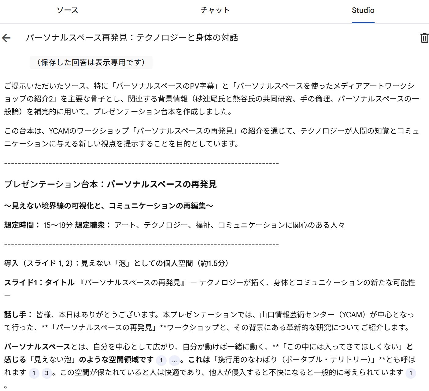 >>今回使用のhttps://notebookLM「パーソナルスペース再発見」
